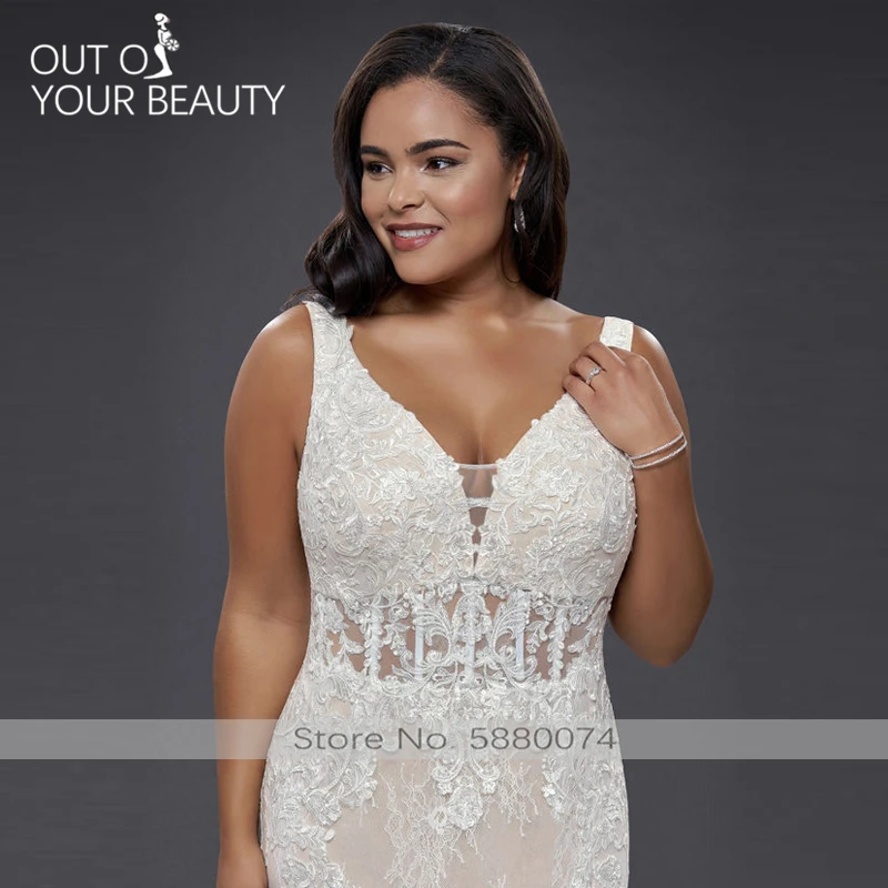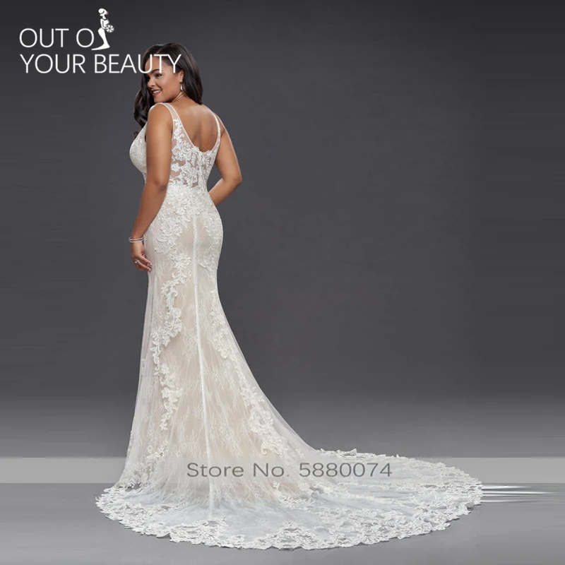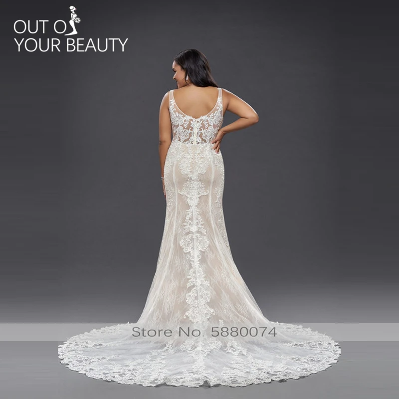 Special Offer فستان زفاف فاخر ميرمان 2020 جديد الشمبانيا الضحلة الخامس الرقبة الدانتيل رائعة زين المطرزة 100 سنتيمتر ذيل رداء كبير الحجم Discount 0% Today!