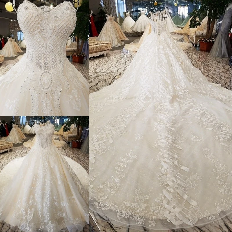 Special Offer فساتين زفاف فاخرة بدون حمالات بدون أكمام بأربطة بدون ظهر مطرز من الصين صور حقيقية فستان إزالة الأعشاب الضارة 2020 LS74521 Discount 0% Today!
