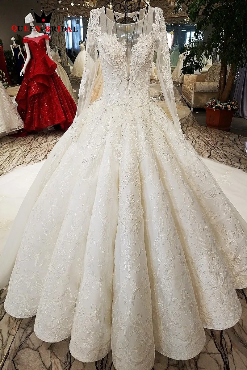Special Offer عينة حقيقية طويلة الأكمام 2020 رداء دي ماري الكرة ثوب الدانتيل مطرز فيستدو دي نويفا الملكة الزفاف فساتين زفاف طويلة WD101 Discount 23% Today!