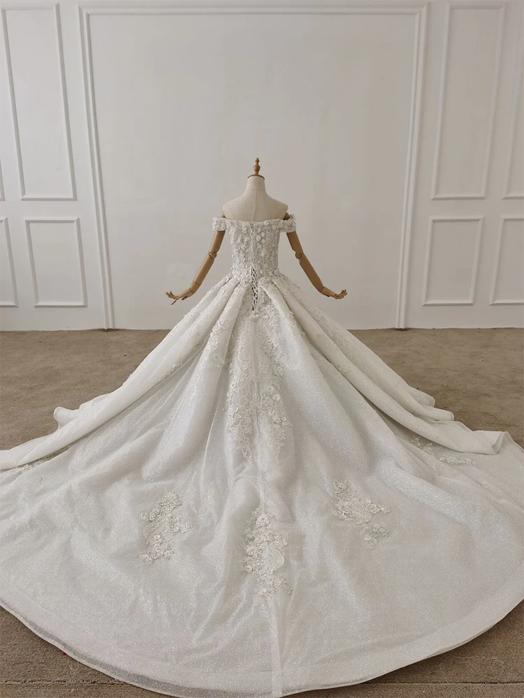 Special Offer BGW 3192ht فستان زفاف 2020 مزين بالعاج لؤلؤي طويل القطار سباركلي فستان زفاف عاري الكتفين Vestido De Noiva Simble Discount 56% Today!