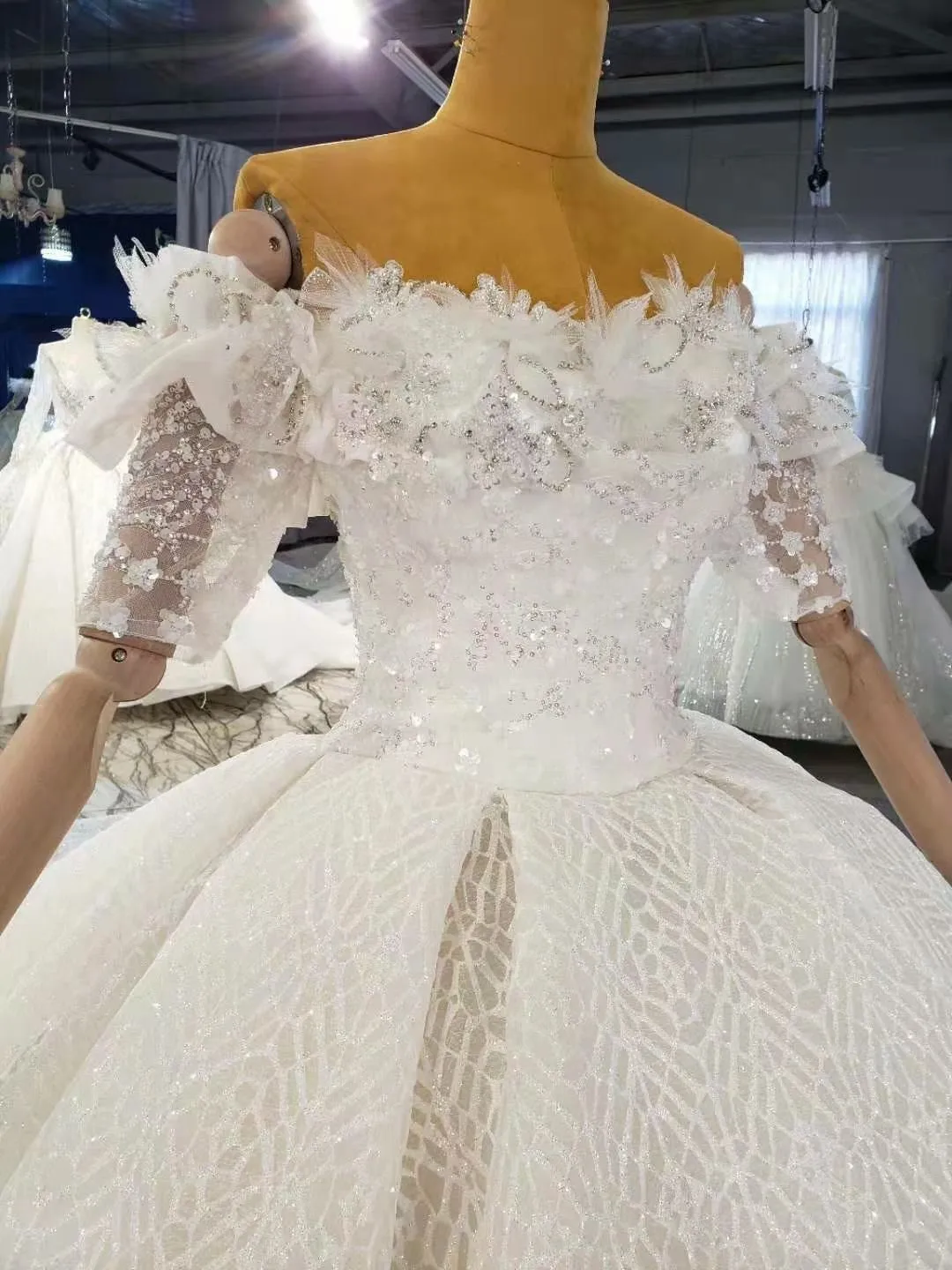 Special Offer فستان زفاف من Vestido Noiva 2021 مزين بزهور كريستال سباركلي مكشوف الكتف لحفلات الزفاف ، فستان فاخر من Brautkleid De Mariage Discount 20% Today!
