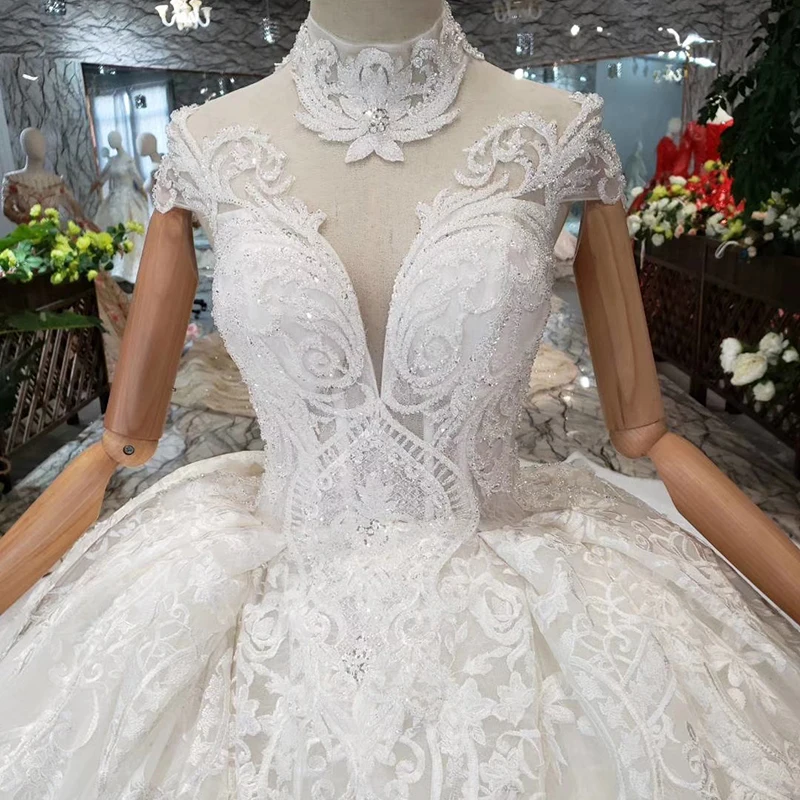 Special Offer BGW HT4283 2020 فساتين زفاف فاخرة بأكمام قصيرة ورقبة عالية مزينة بأربطة للأميرة فساتين زفاف مع قطار طويل Discount 56% Today!