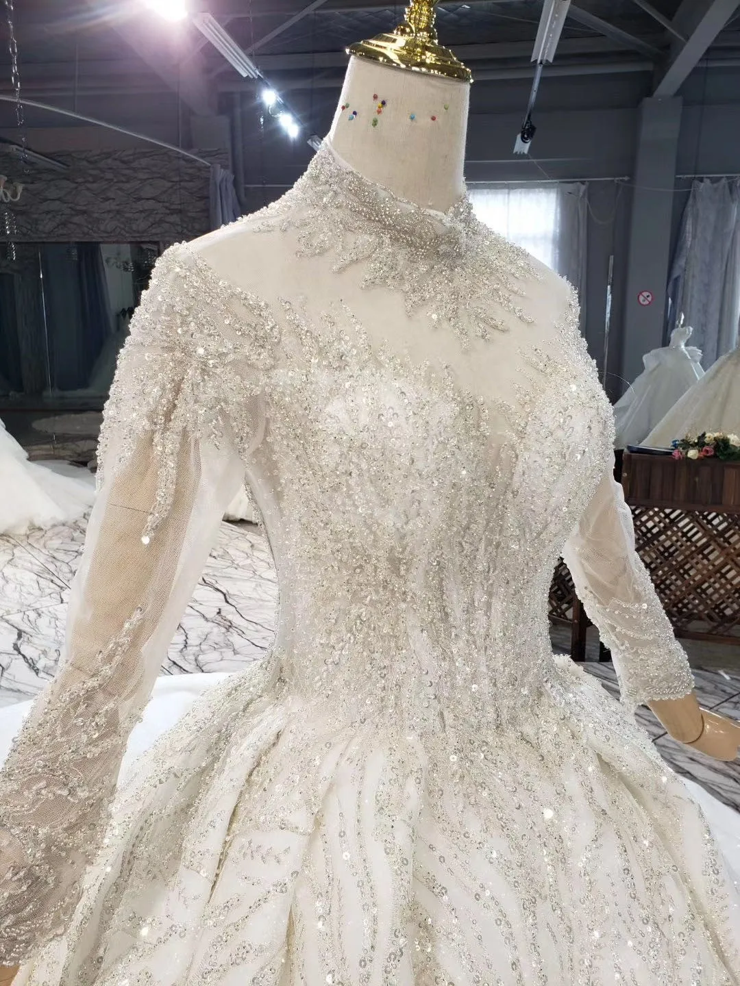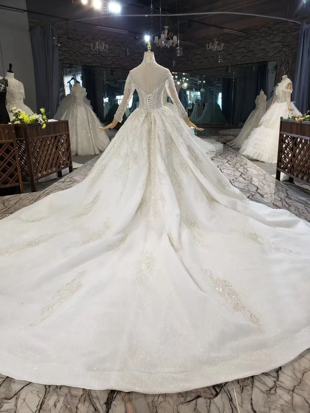 Special Offer فساتين زفاف فاخرة لامعة بكتف واحد مطرزة برباط حتى فساتين زفاف بأكمام طويلة مصنوعة حسب الطلب 2020 Vestido De Noiva Discount 22% Today!