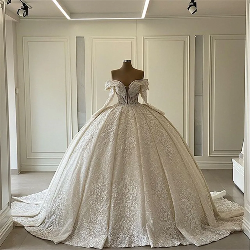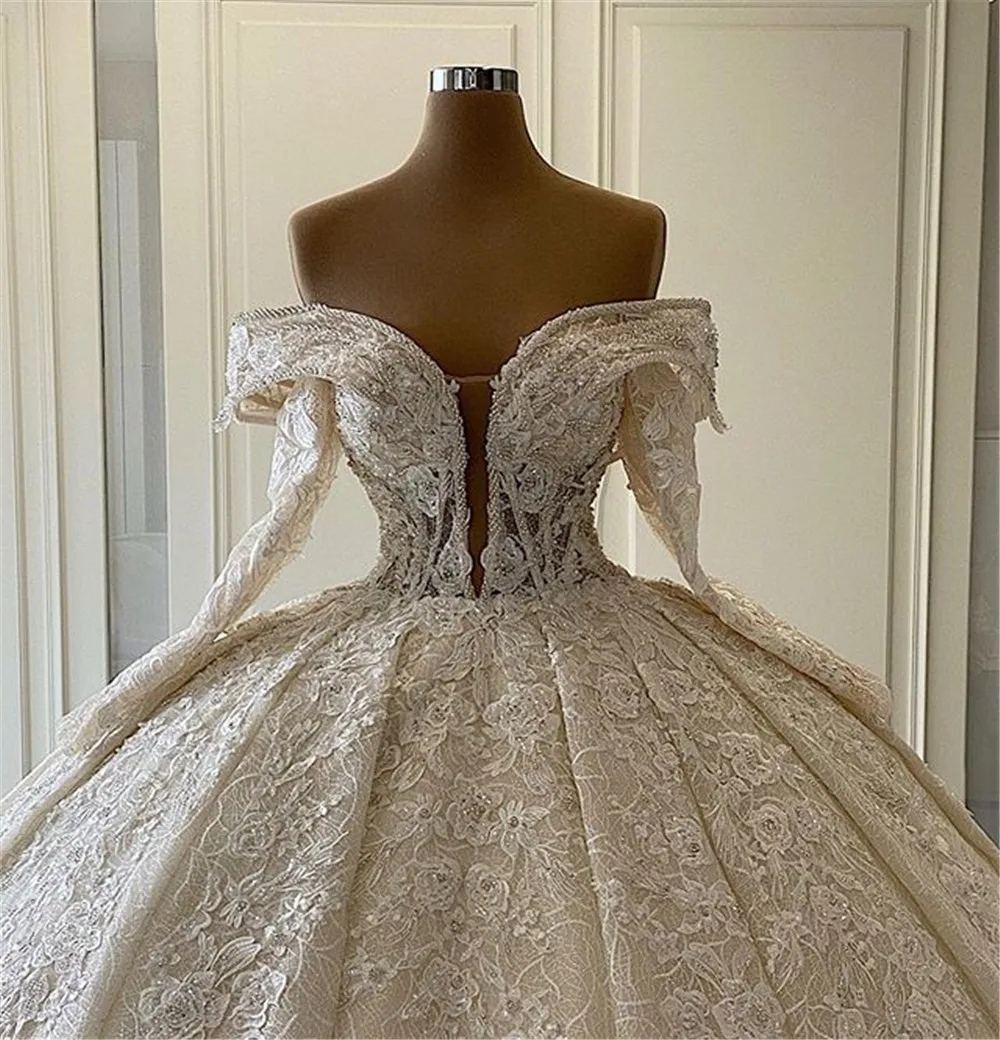 Special Offer رائعة الأحجار الدانتيل الكرة ثوب الزفاف 2021 مثير عميق الخامس الرقبة الدانتيل يصل كم طويل الزفاف زي العرائس Vestido De Noiva Discount 50% Today!