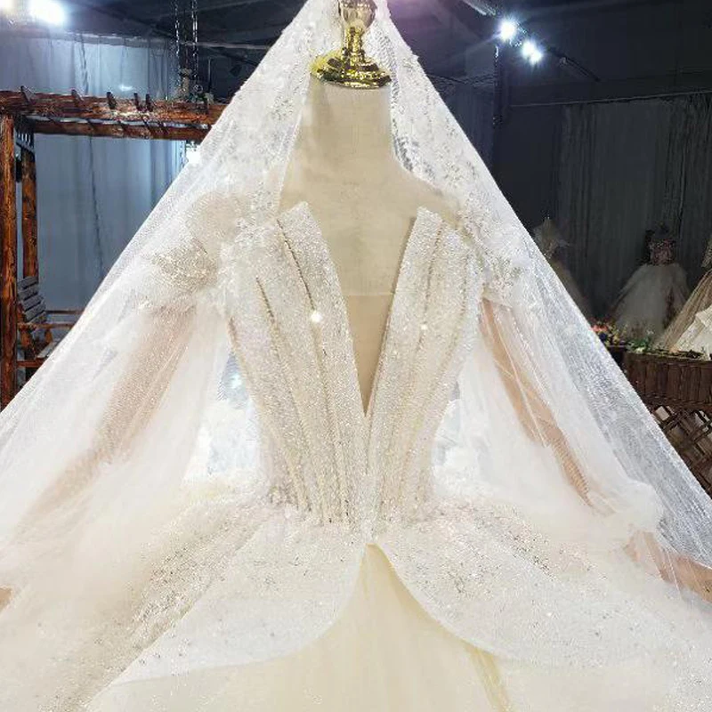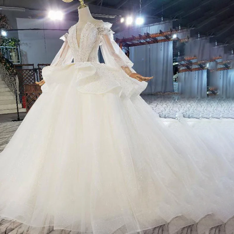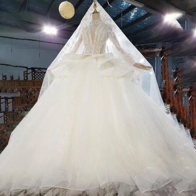 Special Offer HTL1822 مطرز بالخرز فستان الزفاف 2020 رقبة عالية كم نفخة طويل تول دانتيل الظهر زين فستاين سهرة/فساتين الحفلات Discount 55% Today!