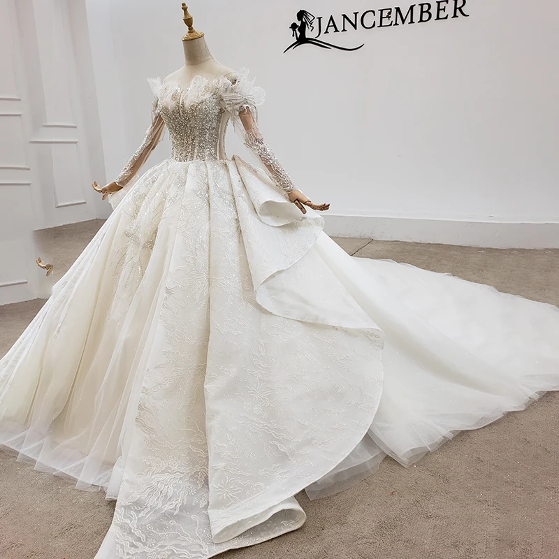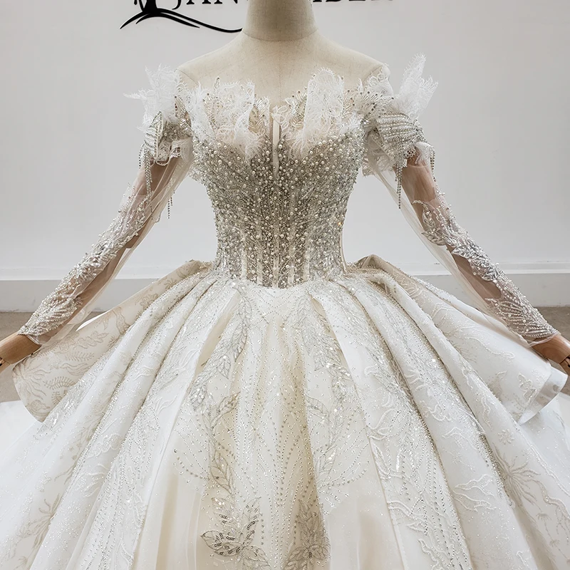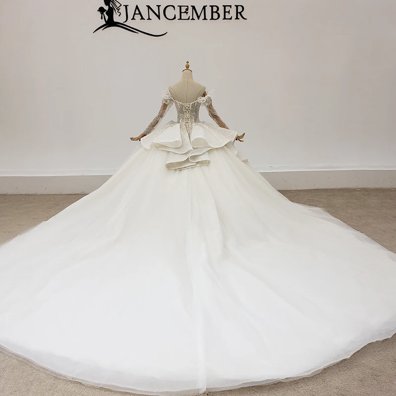 Special Offer فستان زفاف فاخر مطرز بكريستال من HTL1914 فستان زفاف 2020 بأكمام طويلة ورقبة على شكل حرف V وأربطة من الخلف على الكتف Discount 55% Today!