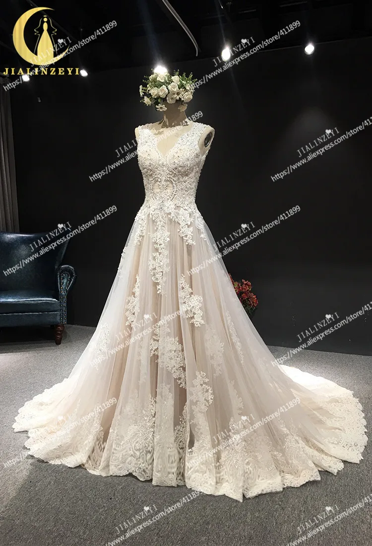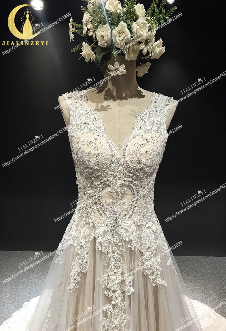 Special Offer JIALINZEYI صورة حقيقية الدانتيل يزين مع الخرز ألف خط فساتين الزفاف الفاخرة ثوب زفاف Dresse 2020 Discount 0% Today!